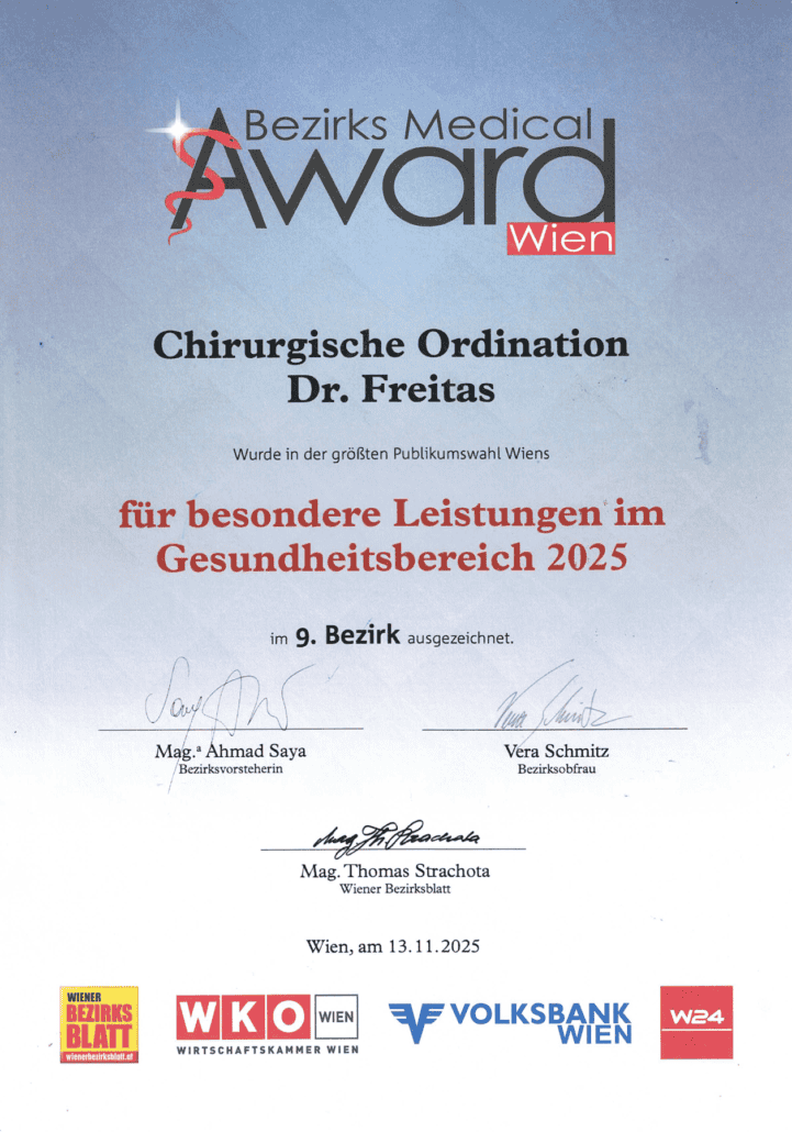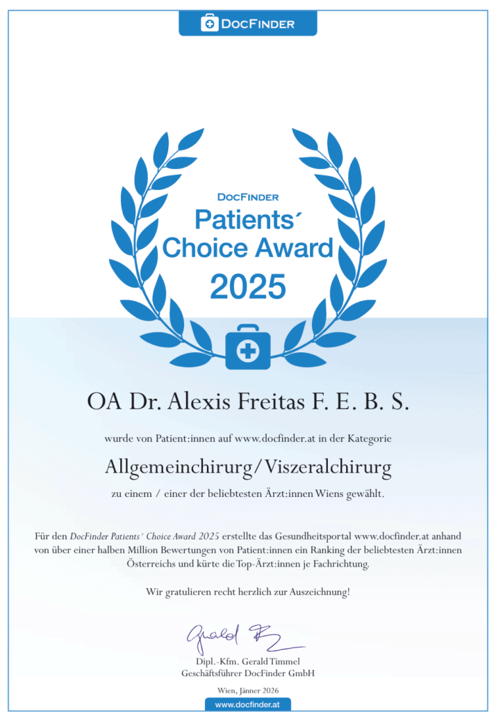 Als Facharzt für Chirurgie und europäischer Facharzt für Koloproktologie behandle ich täglich ein breites Spektrum an Erkrankungen im Bauchbereich – vom Magen bis zum Enddarm, inklusive Gallenblase, Bauchwand (wie Bauchwand-, Leisten-, Nabel- und Zwerchfellbrüche) sowie Krampfadern.